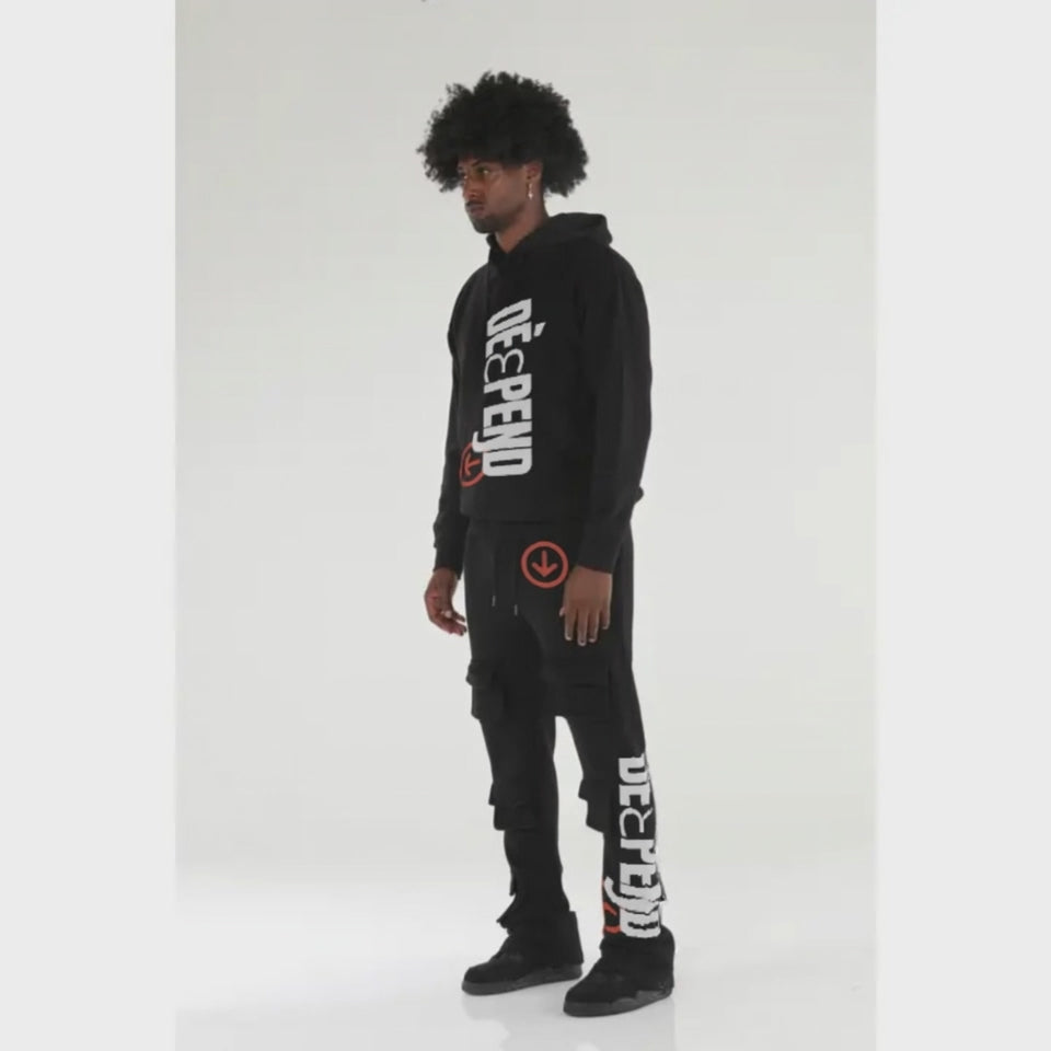 The DèɛpEŋD Black Cargo Jogger Set combines durability and comfort with its high-quality 80% cotton and 20% polyester blend, featuring 3-end fleece for warmth and softness. Designed for versatile streetwear, this set includes functional removable drawstrings for a customizable fit, while cargo pockets add practical storage without compromising style. Ideal for those who prioritize both fashion and utility in their everyday wear.
