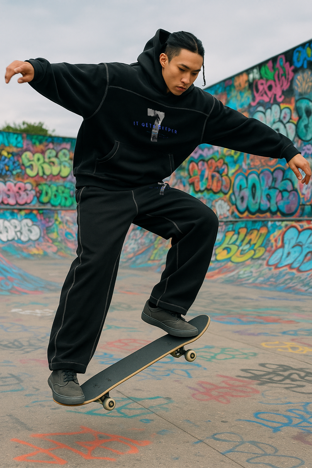 Embrace the vibe with the DèɛpEŋD "It Gets Deeper" Athletic Set—where comfort meets street style. This relaxed-fit jogger set is your go-to for effortless urban looks that work year-round. Whether you're hitting the pavement or keeping it low-key, the breathable fabric and laid-back silhouette keep you moving in style. Perfect for those who get it: fashion that doesn't take itself too seriously, but always delivers.