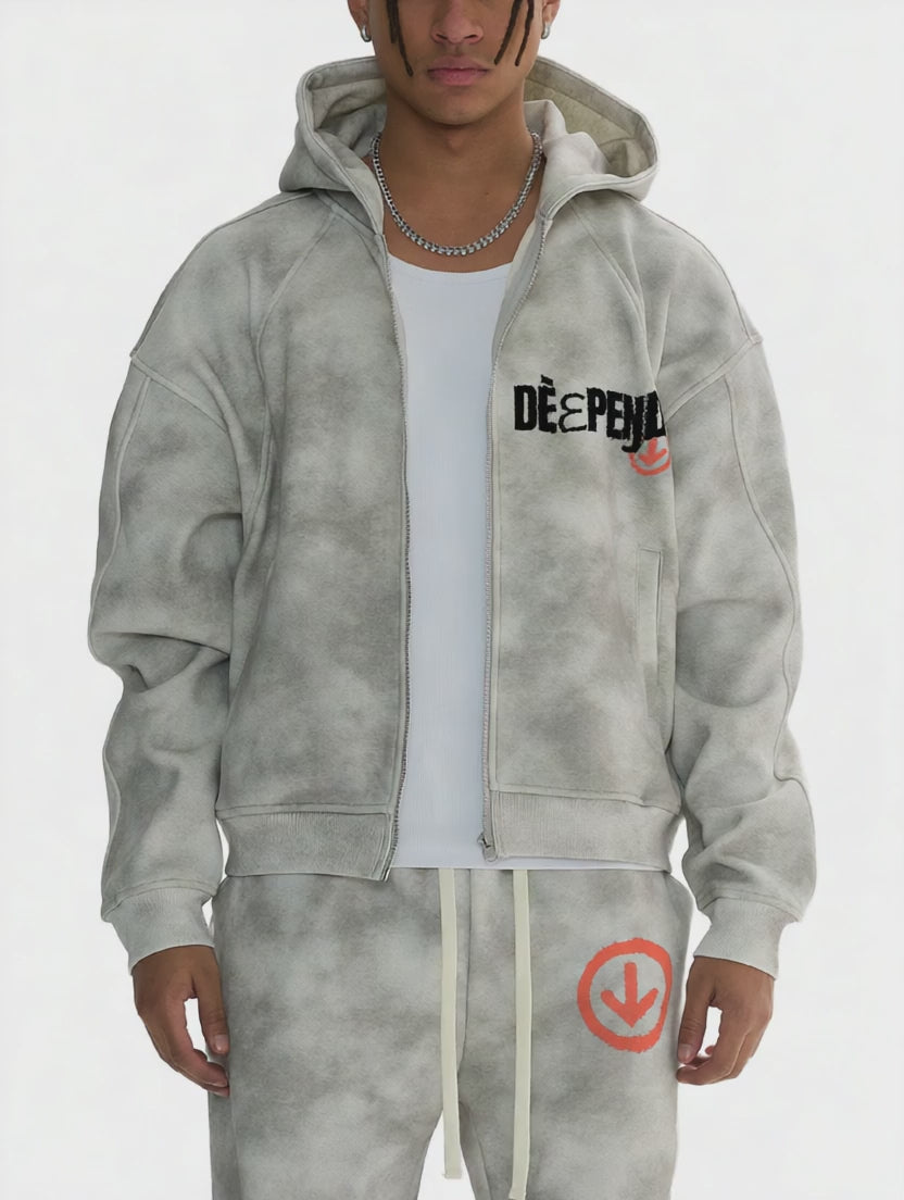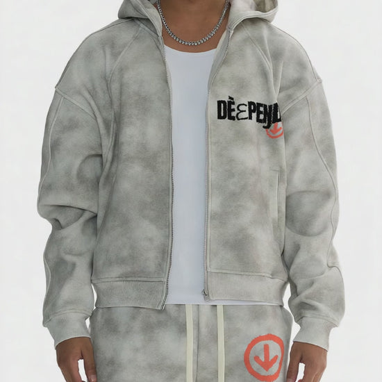 Step into the bold with the DèɛpEŋD Stacked Jogger and Boxy Zip-Up Hoodie, a premium fleece set designed for those who move with intention. Made from 410g heavyweight cotton, this ensemble delivers a plush, structured feel with a relaxed, boxy fit—perfect for layering or standing alone.
