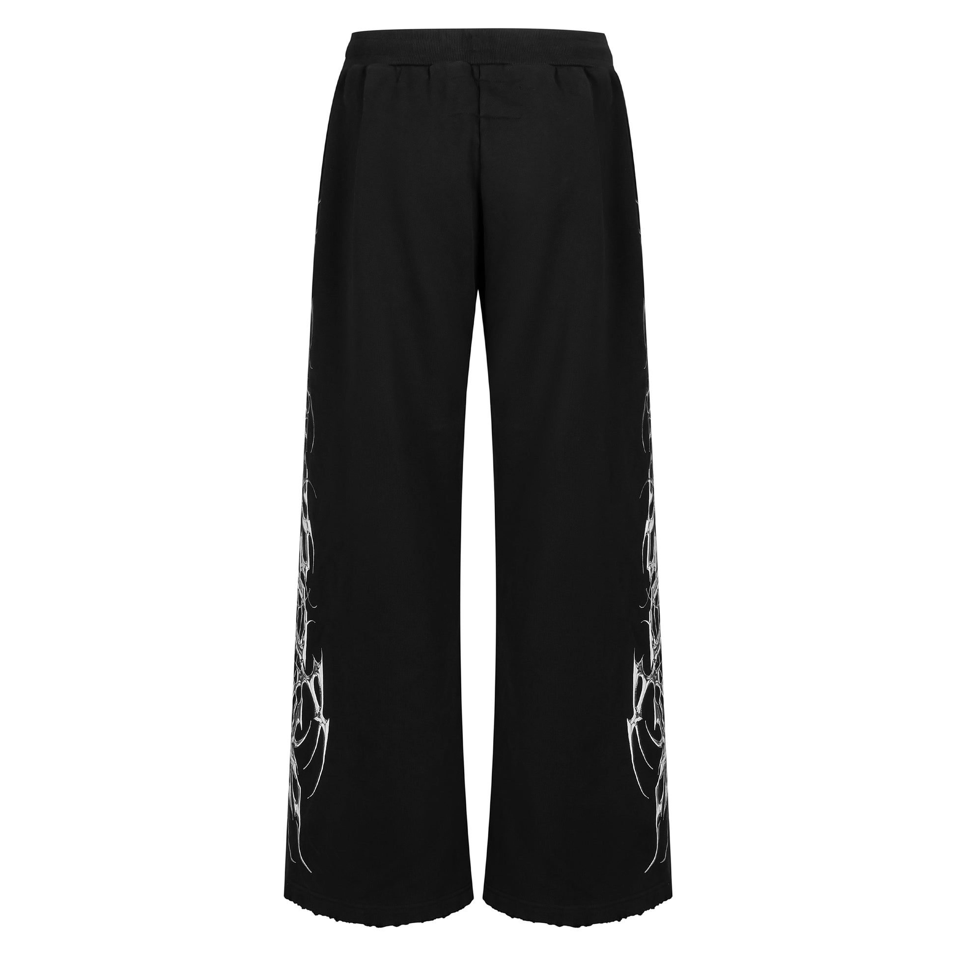 The TRIBAMETAL Sweatpants are built for those who carry weight without saying a word. Heavyweight French terry construction with a metallic tribal graphic running the full length of the side seam — bold, raw, and impossible to ignore. Distressed hems that stack exactly right. Hidden adjustable drawstrings for a clean waistline. Extremely limited. No restock.